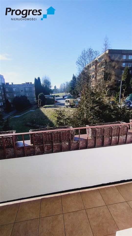 pokój z dużym balkonem, kuchnia, łazienka z WC.